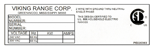 Viking Model Numbers and Serial Numbers are printed on white labels attached to your Viking Appliance.