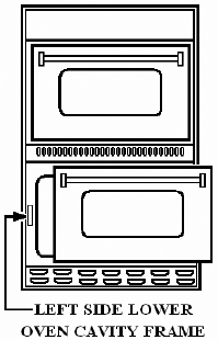 Open the oven door. For double oven units, open the bottom oven door. Look on the left side of the oven cavity frame for the white label.