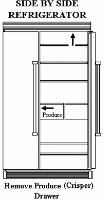 Remove both produce drawers. Look at the now-exposed refrigerator wall for the label.